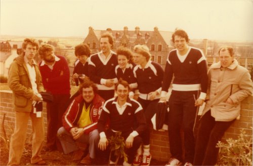 vor dem Länderspiel 1979 in Irland neben einem irischen Betreuer.