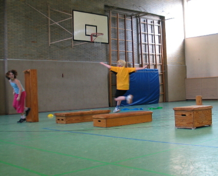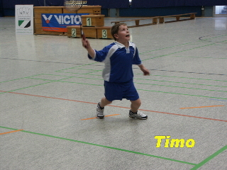 Auf 16 Spielfeldern absolvierten die 7 - 13 jährigen Teilnehmer über 300 Spiele, souverän geleitet von der Turnierleitung des BSV. 27 Vereine u.a. von Bayer 05 Uerdingen, SW Köln, Heiligenhaus, Tönisheide, . . . schickten ihre Kids an den Start. Viele nahmen eine lange Anfahrtszeit in Kauf. Die Kinder mussten ihre Fähigkeiten auf den Spielfeldern unter Beweis stellen, die jüngeren zusätzlich in einem Geschicklichkeitswettbewerb, der auf die Anforderungen eines zukünftigen Badmintonspielers abgestimmt war. So mussten sie einen Hindernisparcour überwinden, den bekannten Kasten-Bumerang-Lauf absolvieren, Federbälle mit badmintongerechter Lauftechnik von der Bank schubsen, einen Medizinball-Nummernlauf (bei dem sich die eigenen vier Buchstaben jeweils möglichst schnell auf nummerierte Medizinbälle setzen mussten) überstehen und ihre Zielsicherheit beim Dosenwurf unter Beweis stellen. Natürlich konnten diese und andere Spiele bzw. Übungen auch von allen anderen ausprobiert werden. Reger Gebrauch wurde von diesem Angebot gemacht. |