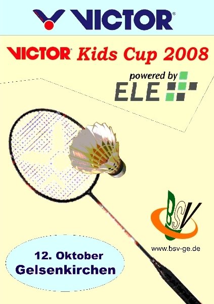 Der letzte Feriensonntag im Oktober und wieder ging es beim BSV Gelsenkirchen rund: Zum dritten Mal startete das Schülerturnier um den VICTOR Kids Cup in den Hallen im Berger Feld. Wie im Vorjahr unterstützen auch an diesem Feriensonntag der Badmintonspezialist Vic-tor und der heimische Energielieferante ELE großzügig das Schülerturnier des Badmin-ton Sport Vereins Gelsenkirchen. Zunächst konnte die Spielvereinigung Sterkrade Nord den Pokal für die erfolgreichste Teilnahme im Vorjahr entgegennehmen. Danach hatten die vielen Helfer des Ausrichters wieder einmal alle Hände voll zu tun, um in drei Hallen auf sechzehn Spielfeldern die knapp zweihundert Spiele abzuwickeln. Daneben gab es in zwei weiteren kleinen Hallen diverse Spiele zum Zeitvertreib für alle Teilnehmer, u.a. einen Dosenwurfwettbewerb. Natürlich gab es auch wieder das kostenlose Veranstaltungs-T-Shirt für die ersten hundert Schüler. Auf den Spielfeldern mussten die Schüler ihre badmintonspezifischen Fähigkeiten unter Beweis stellen, die jüngeren zusätzlich die allgemeinen in einem Geschicklichkeitswettbe-werb, der auf die Anforderungen eines zukünftigen Badmintonspielers abgestimmt war. So waren ein Hindernisparcour zu überwinden, der bekannte Kasten-Bumerang-Lauf zu absolvieren, Federbälle mit badmintongerechter Lauftechnik von der Bank zu schubsen, ein Medizinball-Nummernlauf (bei dem sich die eigenen vier Buchstaben jeweils möglichst schnell auf nummerierte Medizinbälle setzen mussten) zu überstehen und Zielsicherheit beim Dosenwurf unter Beweis zu stellen. Natürlich konnten diese und andere Spiele bzw. Übungen auch von allen anderen ausprobiert werden. Gekämpft wurde in allen